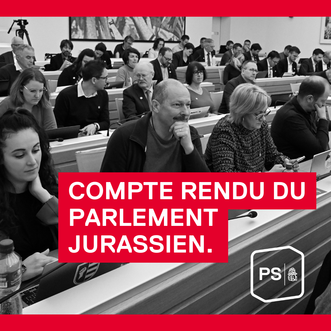 Influent, constructif, pragmatique, créatif et finalement consensuel : le Groupe parlementaire socialiste (GPS) a obtenu un important succès mercredi lors de la séance du Parlement jurassien. À force de négociations, en particulier avec le Centre, une majorité s’est finalement dessinée en faveur du maintien à 5 fr. de la quote-part patient pour les soins à domicile (au lieu de 15,35 fr. maximum). (Lien vers le communiqué de presse)